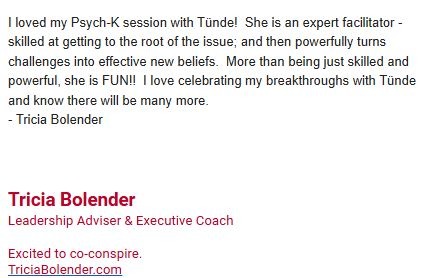 I recommend Tundi as a professional, warm hearted facilitator who see the root cause in seconds and guide you with ease through your own transformational journey,